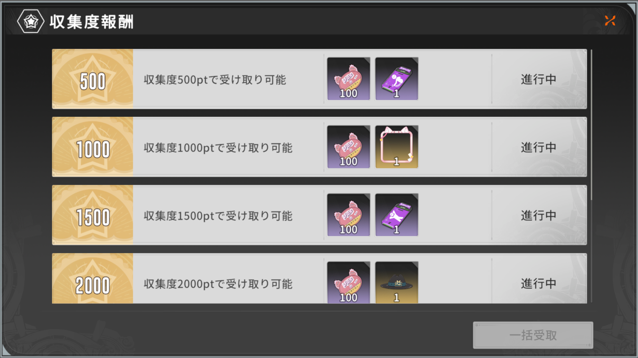 んで毎日これをチマチマやっていけば1週間で1000以上集まるから、足りない分は後はダンジョン周回しまくってアシスト報酬で補う